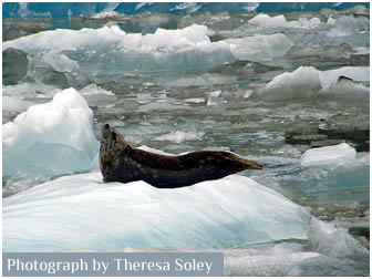 food. In the spring and early summer young seal pups may be seen upon icebergs nuzzling their