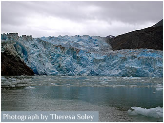 and cracks, sounding sharper than thunder. The entire glacier faces are sealed by icebergs that